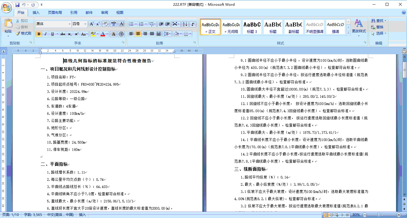 根据各级公路开展交通安全性评价工作的需要,新版纬地路线安全分析系统中集成了“纬地三维道路CAD软件系统”中的“项目几何指标自动审核模块”,用户使用路线安全分析系统在打开公路路线设计项目后,可直接“一键式”自动输出基于设计速度或运行速度的项目主要几何指标审查与检查报告。