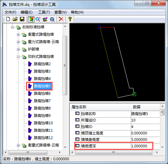 (1)挡墙固定尺寸的埋深设置