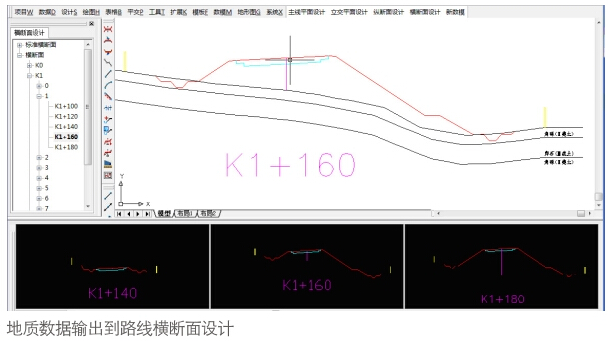 【主要功能与应用范围】系统根据各种不同数据来源的钻孔数据和路线项目数据,基于地质地层间逻辑关系快速建立全线三维地质模型和路基模型;提供多种交互式建模工具,以构建出更符合实际情况的三维地质模型;提供多种面剖切、体剖切方式;快速统计输出钻孔柱状图、纵横剖面图及各类汇总表和统计表;系统适用于各类线性工程(公路、铁路、市政)。