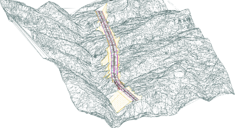 纬地软件可以接收、转化和利用各种来源的地面三维数据信息(三维激光扫描数据即LAS数据、DEM、DTM以及三维电子地形图等),快速构建高精度数字地面模型(不规则三角网),根据各等级公路、城市道路、林区、矿区、厂区道路、互通式立交、桥梁、涵洞、隧道、路基、以及地质等不同设计专业的要求,实时剖切生成地面剖切线和数据,为各专业的设计提供原始地面线资料数据。纬地软件提供了强大的三角网编辑、修改、优化、存储等功能,并提供将两维电子地形图向三维地形图的批量转化功能。