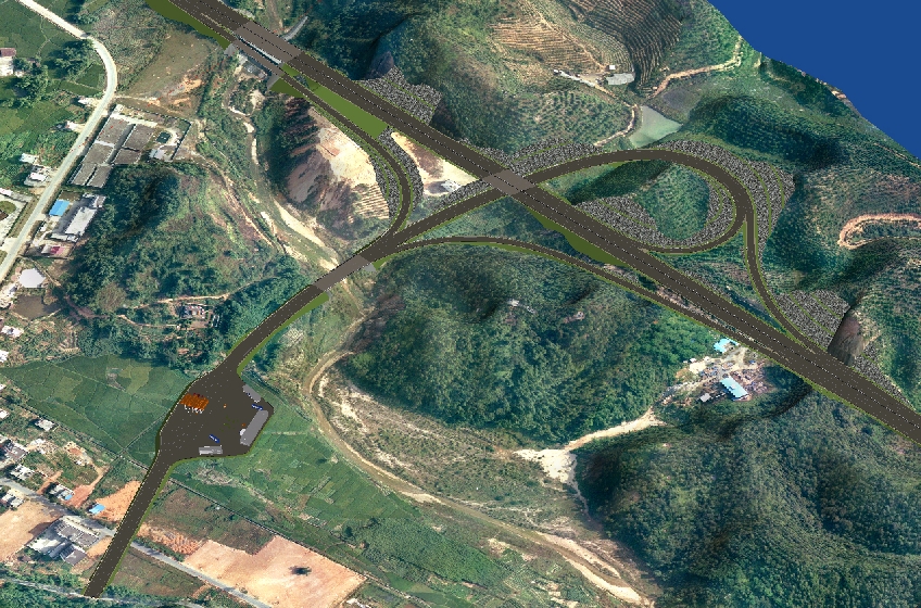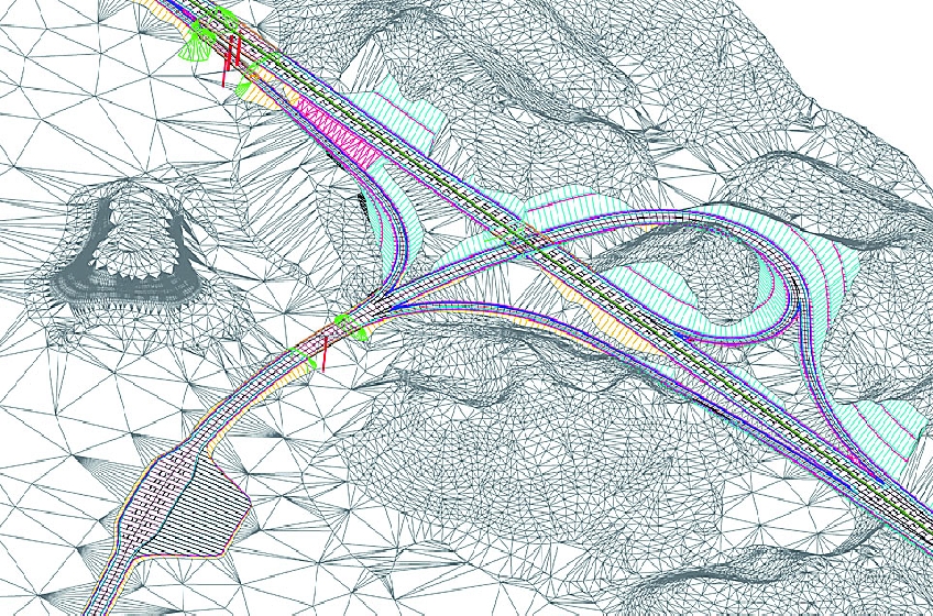 用户可基于电子地形图背景,直接进行互通式立体交叉的匝道平面定线设计、纵断面设计、路基设计、横断面设计、土石方综合调配、涵洞设计、挡土墙设计,设计测量与施工放样,所有相关设计成果(图纸表格)的自动绘制等。