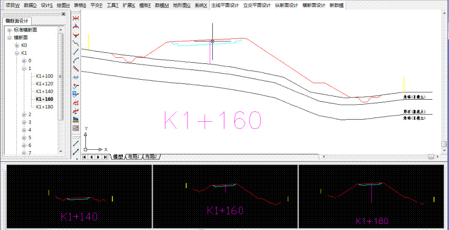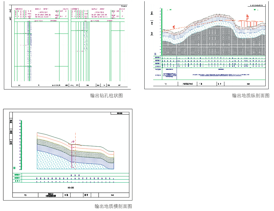 系统可以快速输出所有工点的纵剖面、横剖面、柱状图至AutoCAD中。