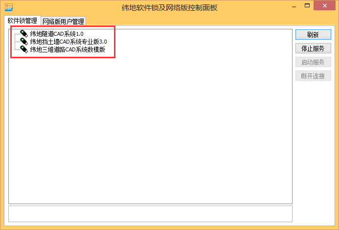 在控制面板下打开 “纬地软件锁及网络版控制面板” (如图1所示路径),出现如图 2所示“软件锁管理”界面。