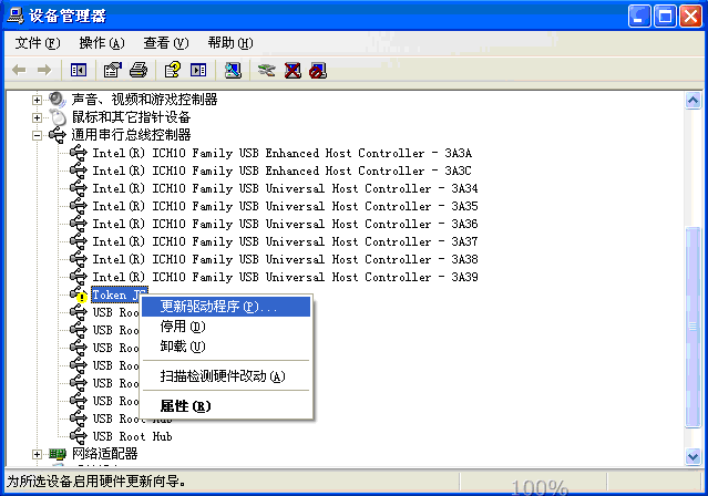2、在XP或Win7操作系统下,右键点击“我的电脑”打开设备管理器(或在控制面板中打开),在其他设备(或通用串行总线控制器)中找到Token JC,若其左侧有黄色叹号提示(如图3所示),则是由于计算机系统中缺少USBCCID(微软Devices-USB芯片智能卡接口设备)驱动程序,或驱动程序为旧版本,导致系统无法读取软件锁或读取不稳定。具体处理办法可查看纬地秘笈博客“纬地6.9系列软件因驱动问题不能正常启动解决方案”,安装USBCCID系统补丁即可。纬地v6.9系列下载列表中提供USBCCID系统补丁的下载。