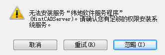 安装纬地软件过程中,或者单独安装纬地服务器“HintServer.msi”时,若系统提示“无法安装”,如图4所示