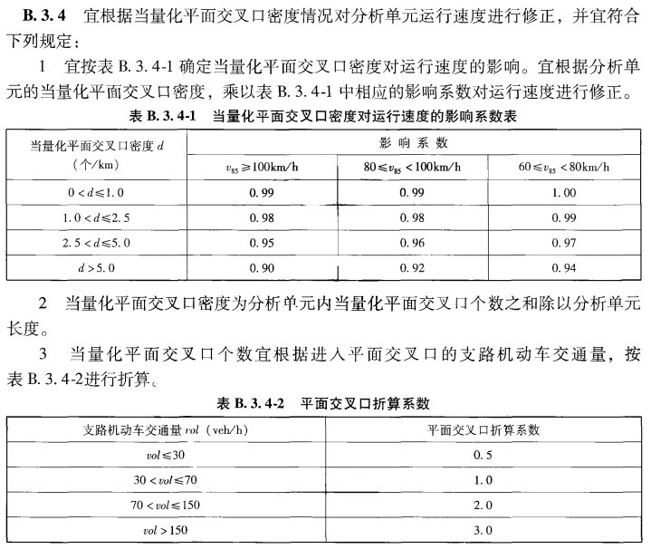 支路交通量:也会对平面交叉口的数量有一定的影响,支路交通量越大,交叉口的数量会以系数倍增。可参考下表“JTG B05-2015 公路项目安全性评价规范”中P35页的说明。