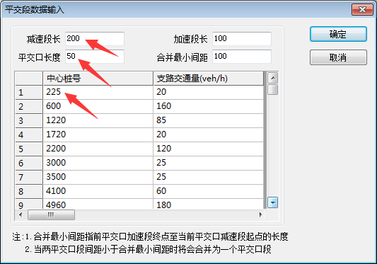 1) 平交口的中心桩号输入:大于或等于加减速段长度+平交口长度/2 ,如下图所示:225=100+100+50/2