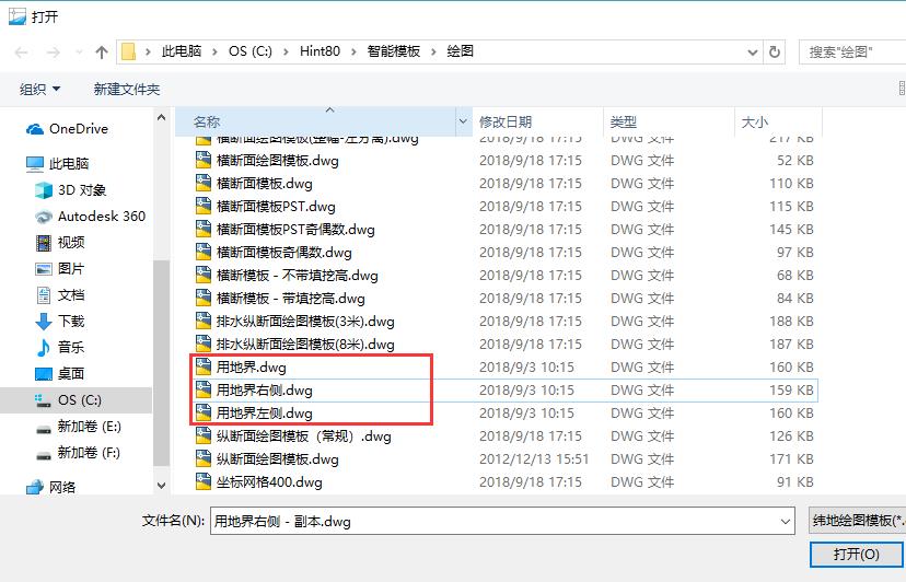 第二步,根据提示选择用地界标注模板(系统内置了左侧用地界 、右侧用地界 、占地界三种常用模板样式,用户也可以根据项目需求,定制专用的标准样式)。