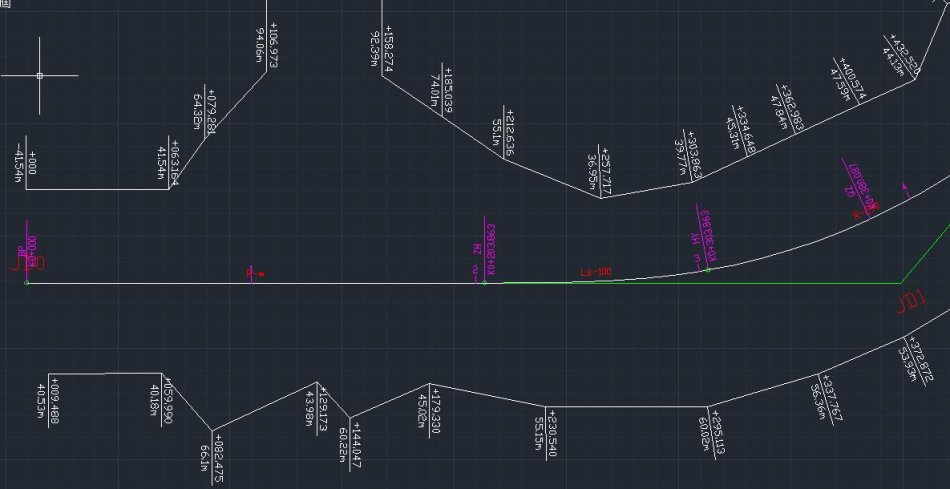 当用户选取“用地界.dwg”进行用地界标注时,根据CAD命令行提示选择要标注的点,即可对所选取的用地界位置的点进行桩号和偏距的标注;也可在CAD命令行输入P对已有多段线进行标注,选择多段线后,系统会自动标注该多段线的各个角点占地界。