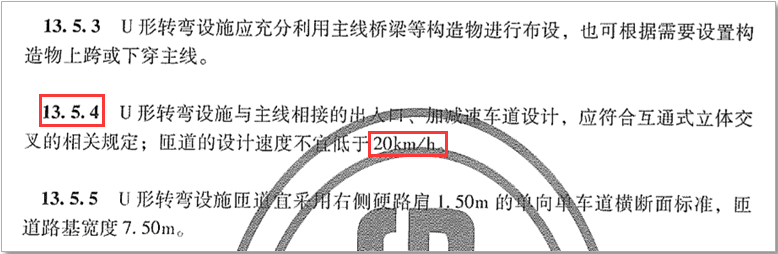 《规范》第13章与U型转弯匝道相关的内容,是本期《规范》修订根据建设需求新增加的章节内容。该章节还包括收费站、服务区、停车区、客运汽车停靠站等几何设计的内容。