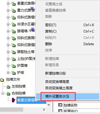 纬地中支档物修改后,挡墙出现,如何在挡墙外侧设置排水沟!