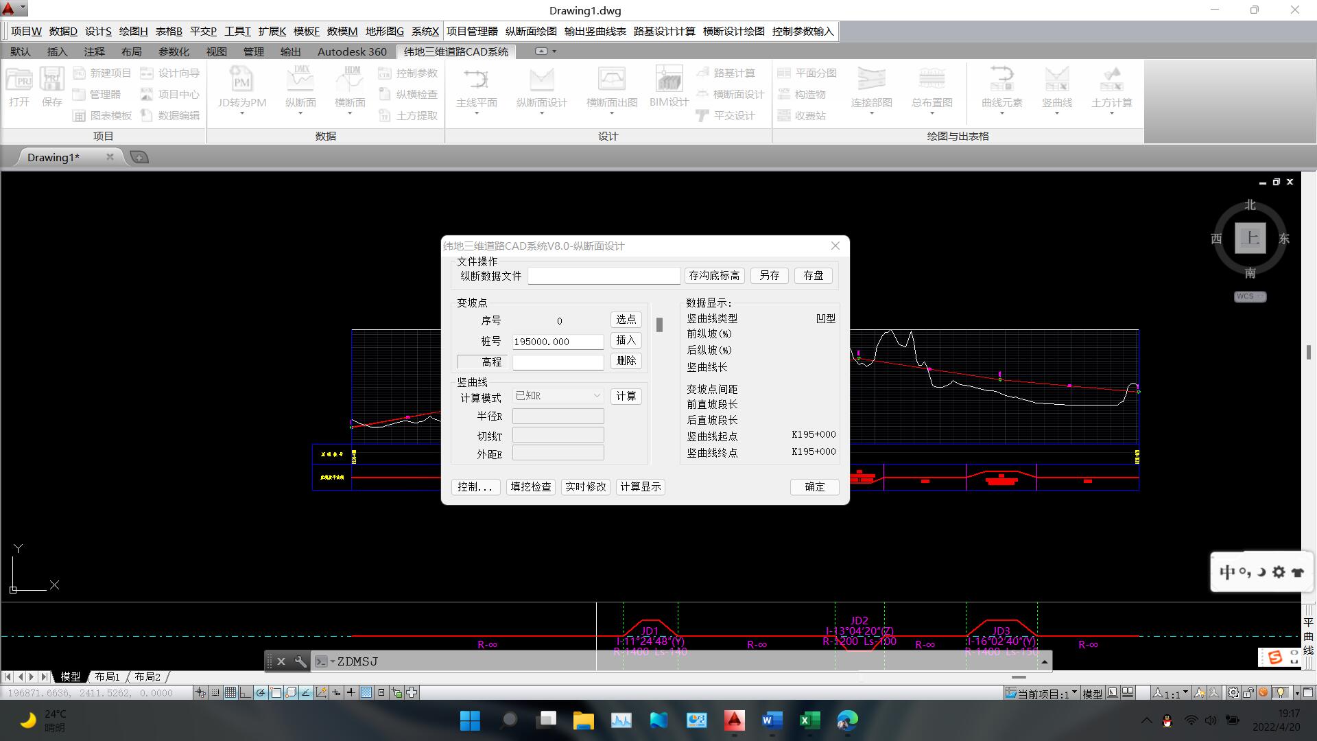 我的是纬地道路V8.0试用版,在安装之后进行纵断面设计,由于平面是在纸质版地形图完成,所以先新建项目把平面交点桩号、坐标以及高程点全部输入进去,然后开始纵断面设计,可以选点,也可以插入,但是设计时以及设计完不显示高程,网上搜也没什么结果